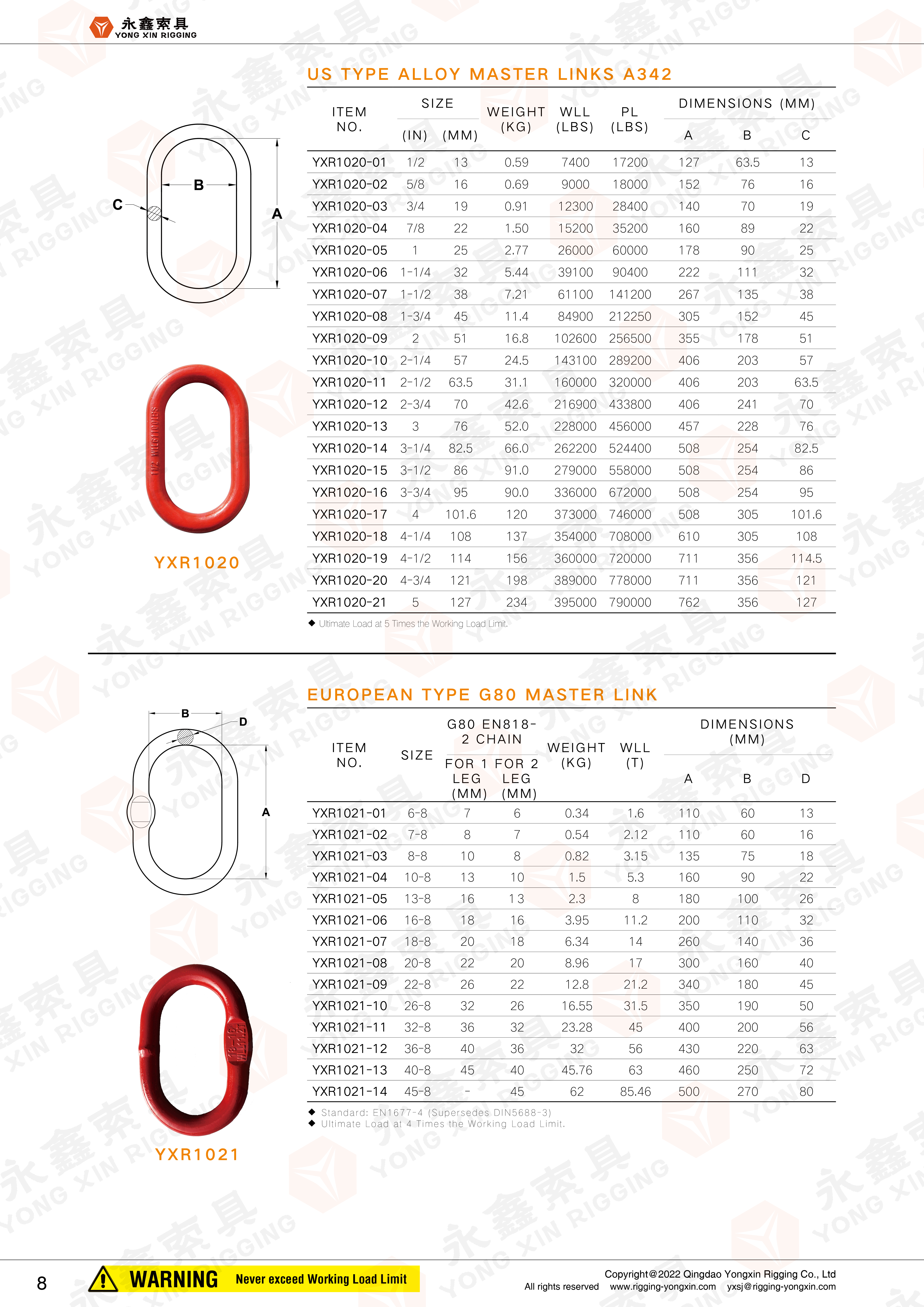 Breaking strength: 4 times W.L.L