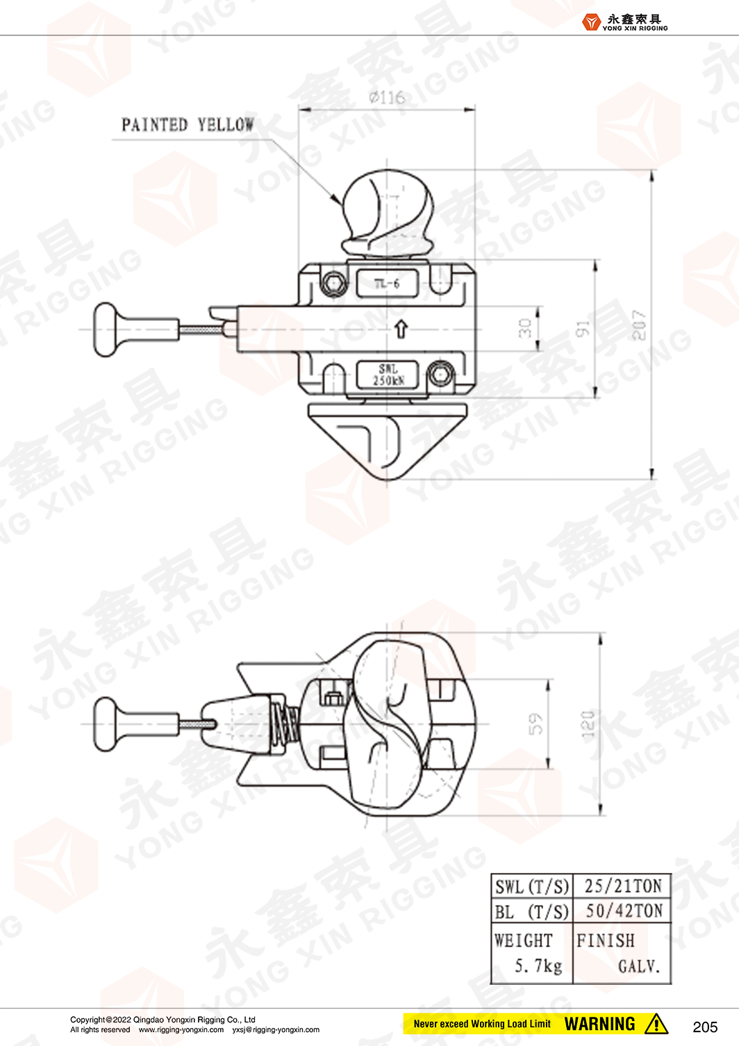Place of origin:Shandong,China Brand Name:YONGXIN Model Number: TL-6 Material: SCW480/490, 40Cr, 45# Surface: HDG, Galvaized Technology: Forging, Welded Size: TL-6 BL: 500KN SWL: 250KN Using for: Container Lashing Fittings
