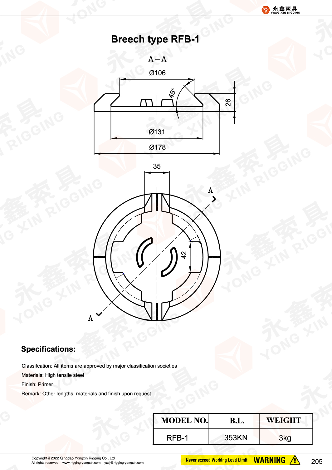 Place of origin:Shandong,China Brand Name:YONGXIN Model Number: RFB-1 Material: SCW480/490, 40Cr, 45# Surface: HDG, Galvaized Technology: Casting, Welded Size: According to Order BL: 353KN SWL: 176.5KN Using for: Container Fittings
