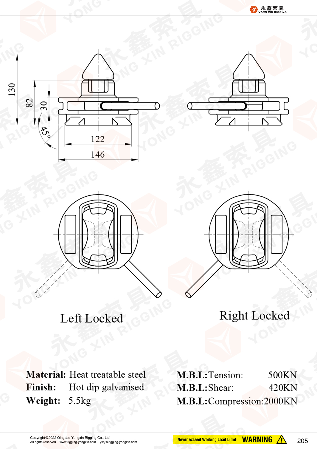 Place of origin:Shandong,China Brand Name:YONGXIN Model Number: TL-1 Material: SCW480/490, 40Cr, 45# Surface: HDG, Galvaized Technology: Forging, Welded Size: TL-1 BL: 500KN SWL: 250KN Using for: Container Lashing Fittings